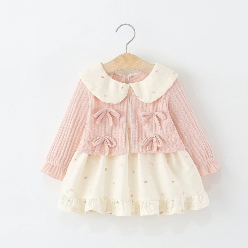 Children's Clothing Girls Dress Spring and Autum Kidsren's Baby Girl Doll Collar Floral Bow Fake Two-Piece Princess Skirt